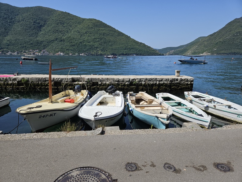Parmi nos destinations touristiques du matin, Perast, un ancien port minuscule reconverti en halte pour groupes, où chaque maison loue des chambres, et où la façade sur le lac a été convertie en hôtels / restaurants. Deux petites îles juste en face voient défiler des milliers de personnes.