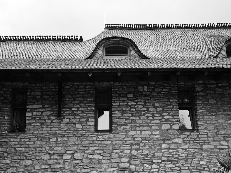 On entre malgré les échafaudages, sait-on jamais d'autant que personne n'est à l'entrée pour percevoir nos trente lei réglementaires. Valérie manque d'avoir une crise cardiaque en entrant dans le bâtiment obscur car s'il n'y a personne à l'extérieur, il y a quelqu'un dedans qui attendait dans l'obscurité depuis ce matin un hypothétique visiteur et qui se dresse comme un diable sortant de sa boite à notre arrivée. Et allume la lumière.