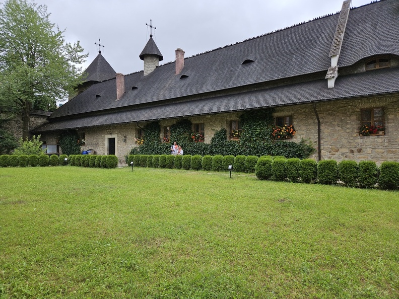 Chaque monastère est censé avoir une couleur dominante mais ça ne (me) saute pas aux yeux. Je note par contre c'est que le clergé orthodoxe a l'air de bien se porter en récoltant les droits d'entrée, en vivant dans des monastères nickels chrome et finalement en ressemblant à des caricatures d'eux-mêmes, surtout les hommes qui sont ventripotents (en même temps le régime alimentaire roumain ne permet pas de rester svelte mais j'y reviendrai). Bref ils font leur travail de clergé.